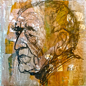 This was done a few days ago. Today I created 12 collaged backgrounds. It was so much fun. I always save the smallest scraps of painted collage paper. Working this size, these little pieces add an interesting touch. I loved making these little jewel of an abstract composition. It helped knowing I was going to add an ink drawing on top. Making a bunch at a time and having them each a different idea let me try out ideas as they came to me. I have never worked in this manner before and it was exciting. I have decided to complete all the backgrounds before I do any more ink drawings.